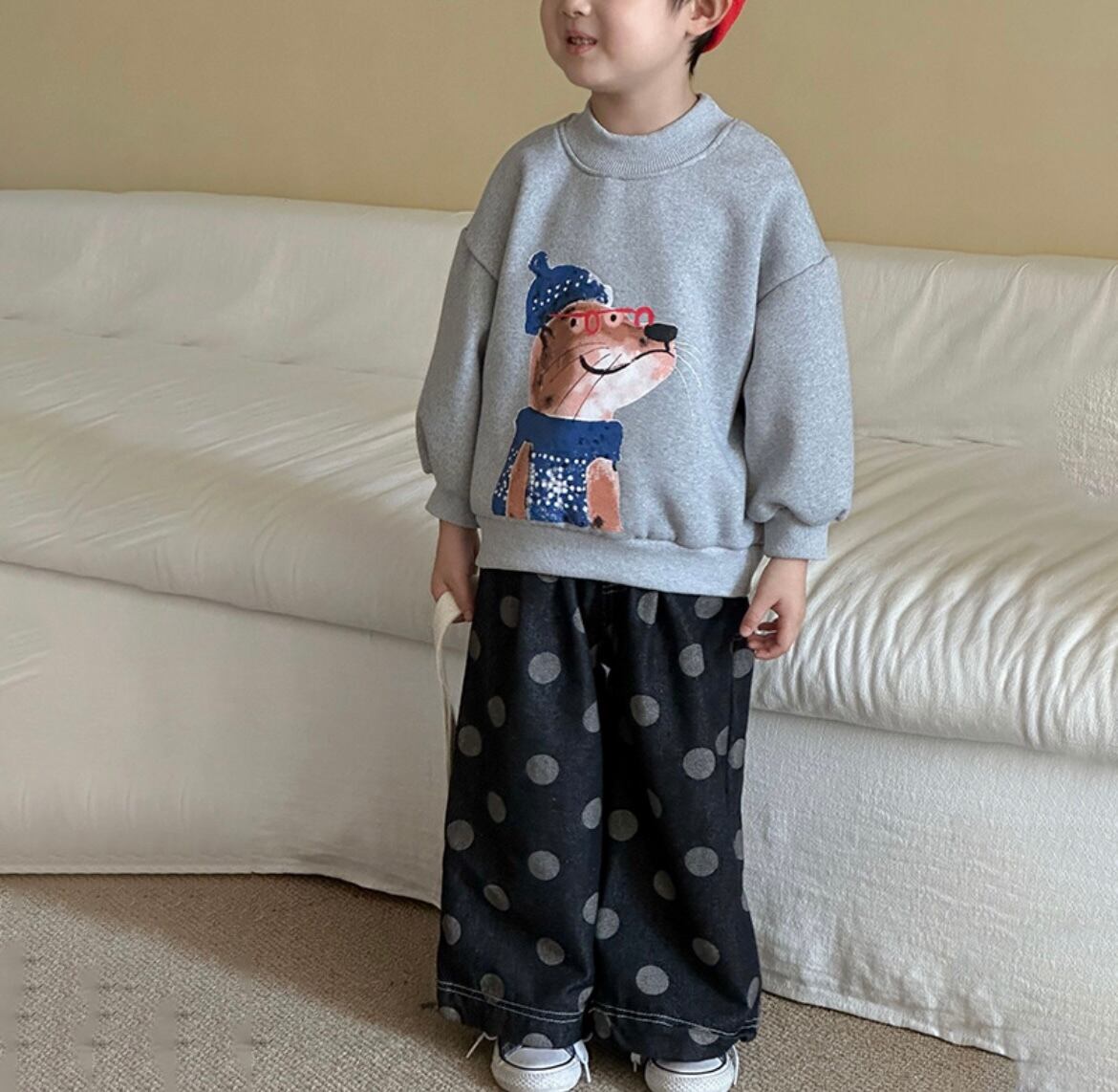 カジュアルでおしゃれな「ワイドデニムパンツ/ドッド柄」が新たにラインナップに加わりました!ゆったりとしたシルエットは、普段使いからお出かけまで幅広く活躍します♪ドッド柄がポイントとなり、シンプルなスタイルに遊び心をプラスします。
