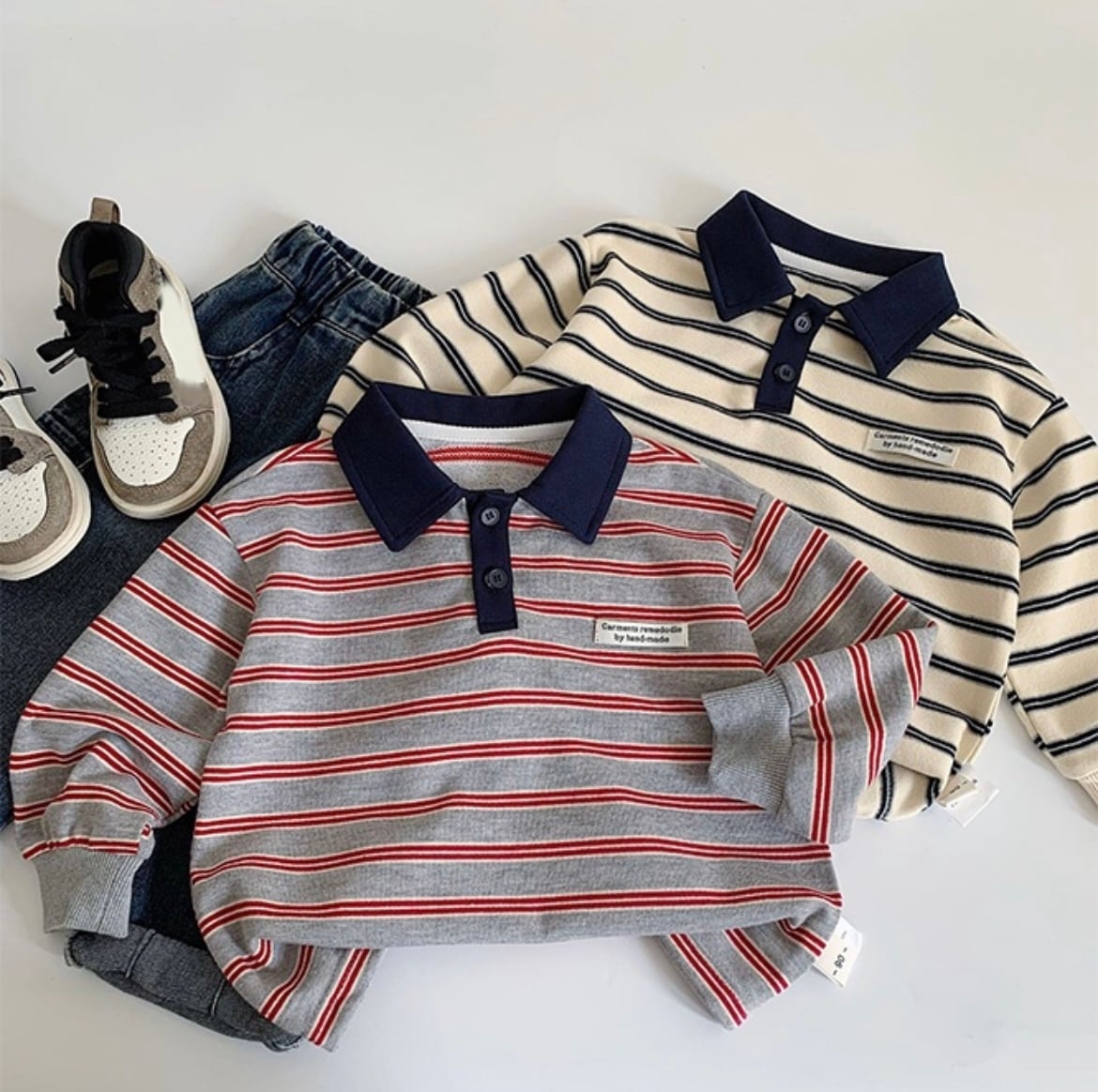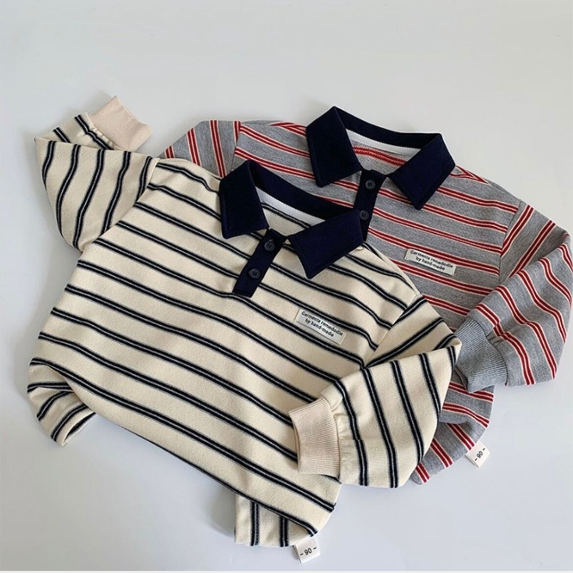 おしゃれで動きやすい「ボーダーストライプスウェットシャツ」が新たにラインナップに加わりました!カジュアルな印象を与えるこのスウェットシャツは、普段使いからお出かけまで幅広く活躍します♪ストライプデザインが特徴的で、シンプルなスタイルに洗練された雰囲気をプラスします。兄弟やお友達とお揃いや色違いでお楽しみください^ ^