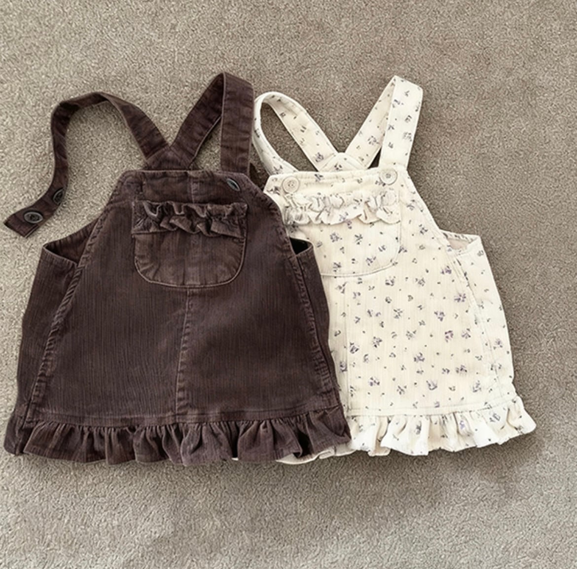 おしゃれでかわいい「コーデュロイジャンパースカート」が新たにラインナップに加わりました!姉妹でかわいく♡さまざまなスタイルで楽しめるこのジャンパースカートは、薄手のお洋服にも厚手のお洋服にも合わせやすく、秋冬のコーディネートに最適です♪柔らかなコーデュロイ素材が特徴で、心地よい着心地を実現します。