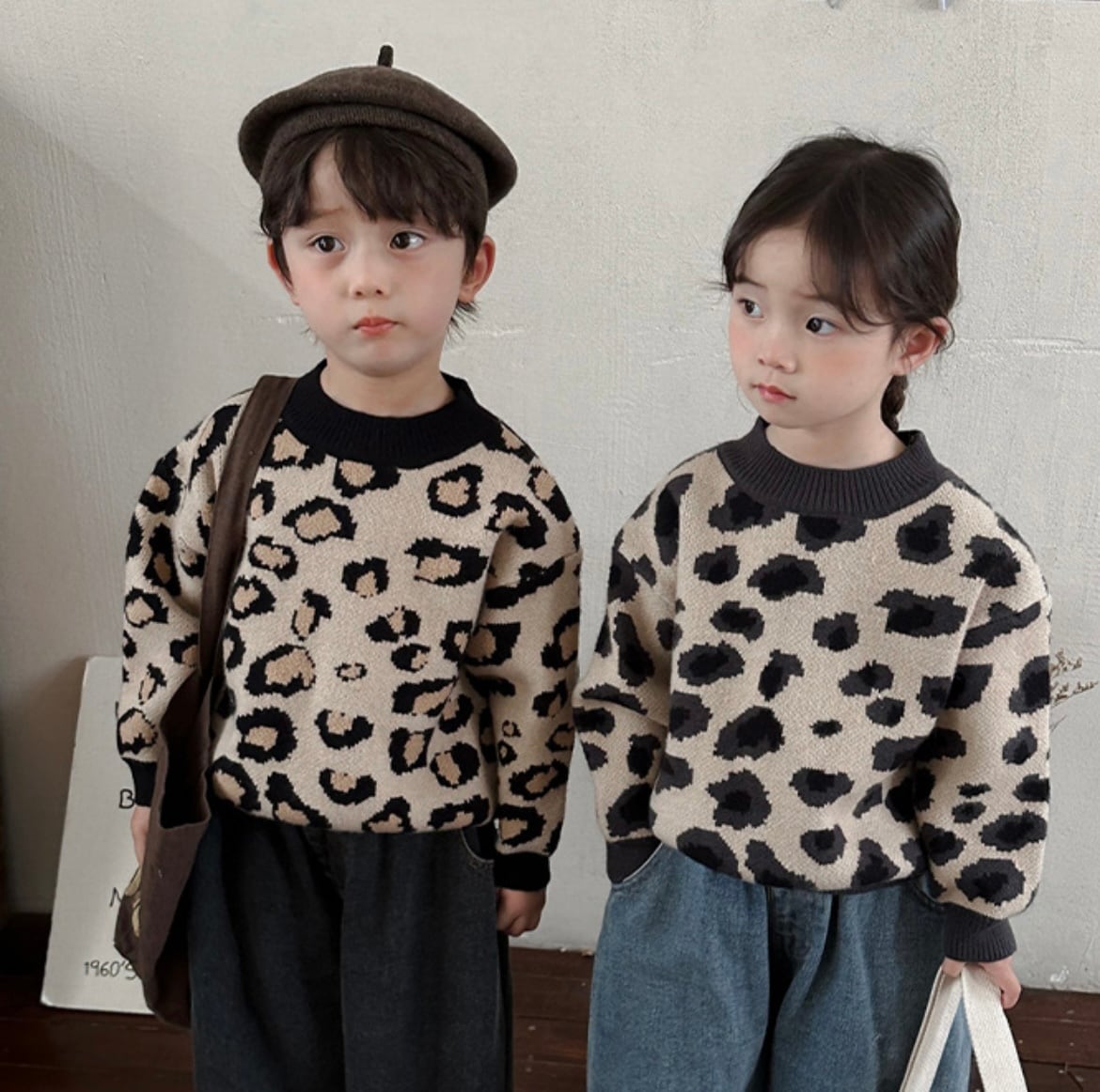 # 【80cm-140cm】レオパード柄ゆったりあったかニット